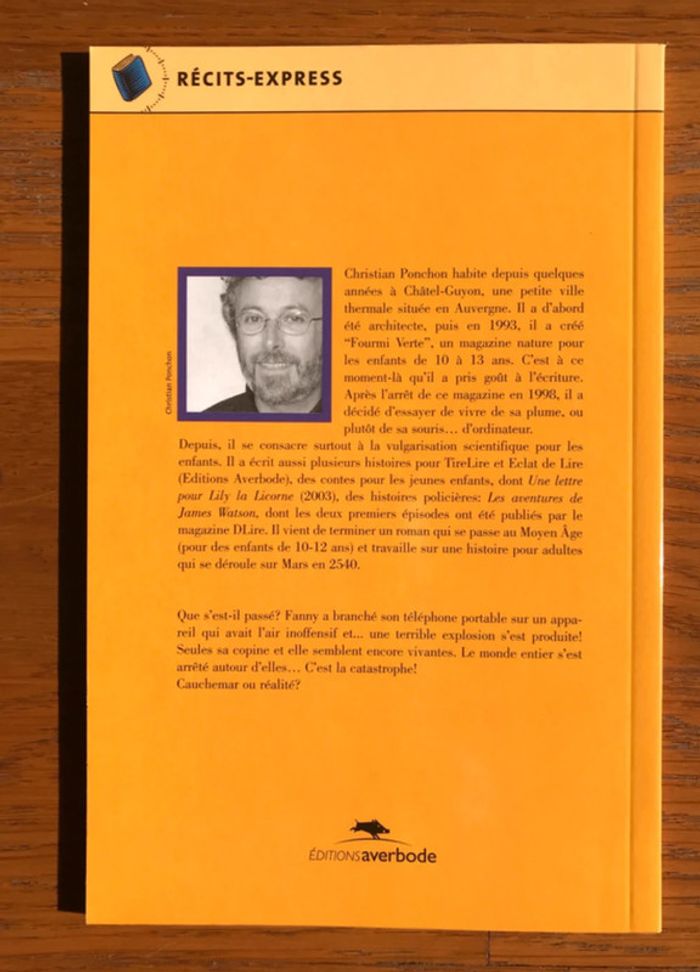 Etat neuf 32 pages Format 13 x 20 cm Roman A partir de 9 ans Que s’est-il passé ? Fanny a branché son téléphone portable sur un appareil qui avait l’air inoffensif et … Une terrible explosion s’est produite ! Seules sa copine et elle semblent encore vivantes. Le monde entier s’est arrêté autour d’elles. C’est la catastrophe ! Cauchemar ou réalité ? Proposé à 5,20 € - négociable #bibliodomi8084