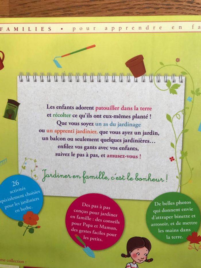 État neuf 76 pages Format ‎ 22.5 x 1.6 x 25.6 cm Jardiner devient facile et il n'est pas nécessaire d'avoir un jardin : un coin de balcon, une jardinière suffisent pour récolter des fleurs, des légumes... Ce livre propose pas à pas des activités simples pour découvrir le rythme des saisons, apprendre les gestes de base, avoir le plaisir de jardiner sans danger et celui de déguster les légumes cultivés. Proposé à 12,50 € - négociable #loisirsdomi8084