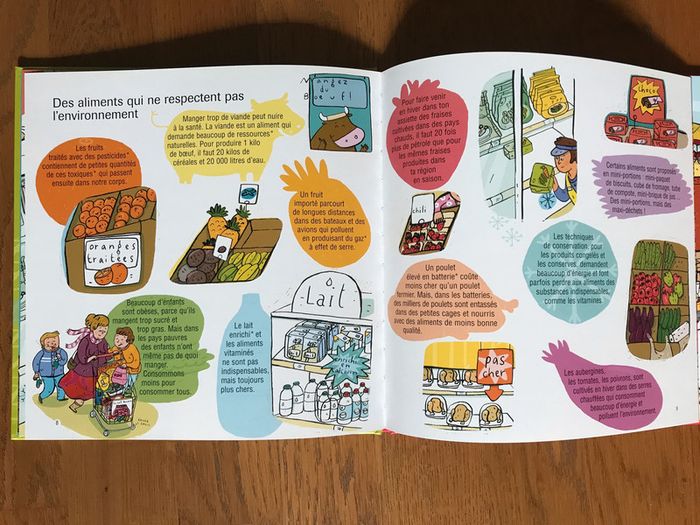 ÉTAT NEUF 21 pages Format 24,3 x 24,3 cm Pourquoi des aliments polluent-ils notre santé et notre environnement ? Comment manger sans polluer ? Comment nourrir six milliards d'hommes ? Qui produit des aliments en respectant la nature ? Un album ludique qui aborde l'impact de la nourriture sur notre santé et sur la planète. Proposé à 8,50 € - négociable #bibliodomi8084