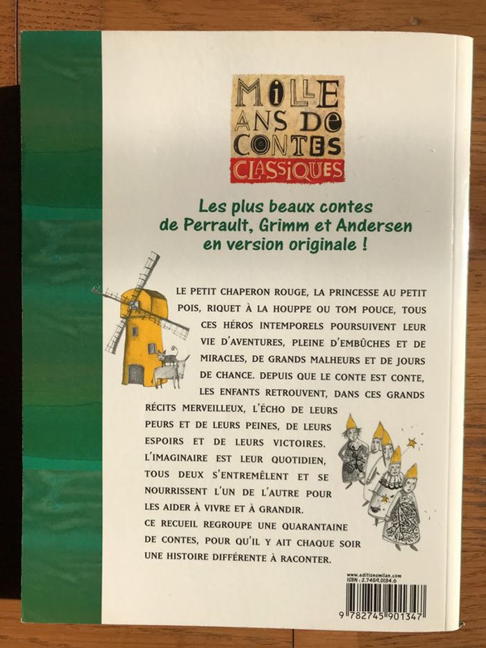 Comme neuf 476 pages Format 18 x 4 x 24 cm Les plus beaux contes de Perrault, Grimm et Andersen en version originale ! Dans "Mille ans de contes classiques", l'enfant peut découvrir et redécouvrir plus de 30 contes classiques de Perrault, d'Andersen et des frères Grimm : "Peau d'âne", "Blanche-Neige", "La Petite Sirène", "Le Vaillant Petit Tailleur" ou encore "Le Petit Poucet", "Le Roi grenouille"... Proposé à 17,80 € #bibliodomi8084