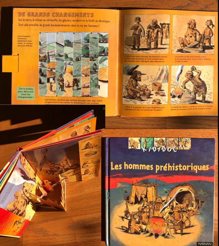 Très bon état 24 pages Format 19.9 x 2.2 x 20.1 cm A partir de 7 ans A quoi ressemblent les hommes préhistoriques ? Comment font-ils du feu ? Plonge au cœur de la préhistoire avec Kididoc ! Soulève un volet et découvre les outils des premiers hommes, actionne une tirette, et projette une lance sur le gibier... Un livre magnifique ! Proposé à 9,80 € #bibliodomi8084