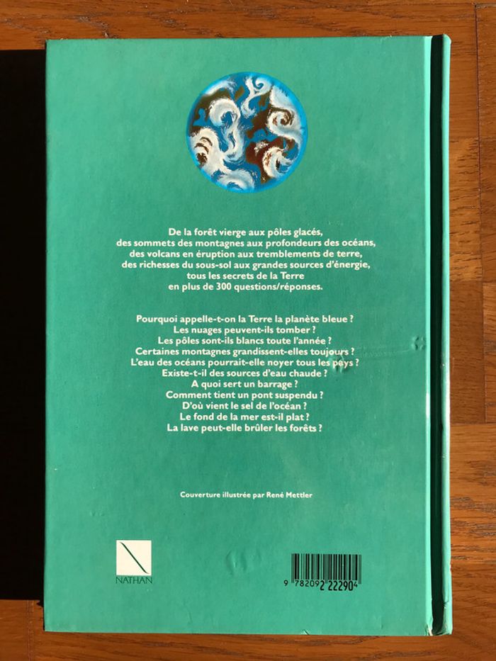 Très bon état 252 pages Format 27.3 x 18.8 x 2 cm A partir de 7 ans De la forêt vierge aux pôles glacés, des sommets des montagnes aux profondeurs des océans, des volcans en éruption aux tremblements de terre, des richesses du sous-sol aux grandes ressources d’énergie, tous les secrets de la Terre en plus de 300 questions-réponses. Pourquoi appelle-t-on la Terre la planète bleue ? Les nuages peuvent-ils tomber ? Les pôles sont-ils blancs toute l’année ? Certaines montagnes grandissent-elles toujours ? L’eau des océans pourraient-elles noyer tous les pays ? Existe-t-il des sources d’eau chaude ? À quoi sert un barrage ? Comment tient un pont suspendu ? D’où vient le sel de l’océan ? Le fond de la mer est-il plat ? La lave peut-être brûler les forêts ? Proposé à 8,50 € - négociable #bibliodomi8084