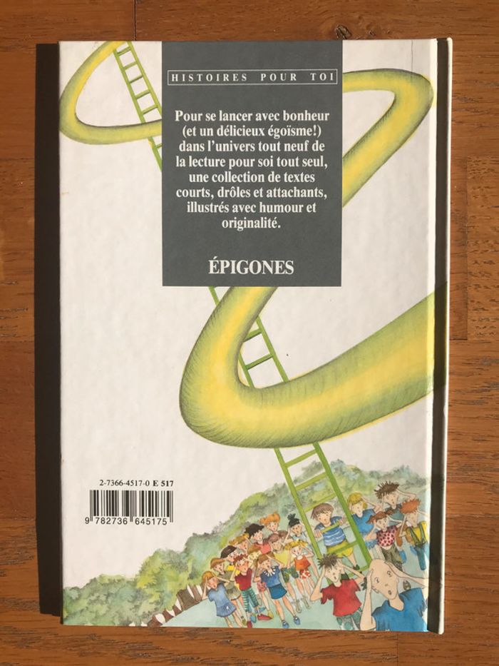 Livre neuf 29 pages Format 14,5 x 22 cm Pour se lancer avec bonheur (et un délicieux égoïsme !) dans l’univers tout neuf de la lecture pour soi tout seul, une collection de textes courts, drôles et attachants, illustrés avec humour et originalité. Gaston turluron : Là, devant lui, se dresse un toboggan immense. Un toboggan excessivement grand qui descend de l’espace jusqu’à la surface de la Terre. A partir de 6 ans Proposé à 6,50 € - négociable #bibliodomi8084