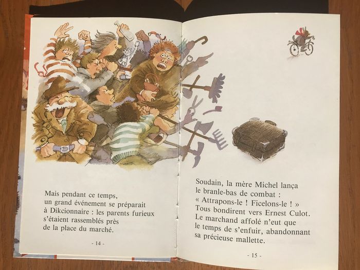 Livre neuf 29 pages Format 14,5 x 22 cm Pour se lancer avec bonheur (et un délicieux égoïsme !) dans l’univers tout neuf de la lecture pour soi tout seul, une collection de textes courts, drôles et attachants, illustrés avec humour et originalité. Le marchand de gros mots : Il ouvrit sa mallette, sortit une petite balance et se tourna vers la vieille dame : « Combien en voulez-vous ? » A partir de 6 ans Proposé à 6,50 € - négociable #bibliodomi8084