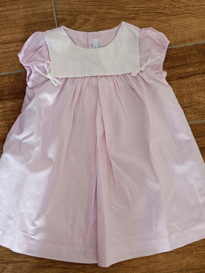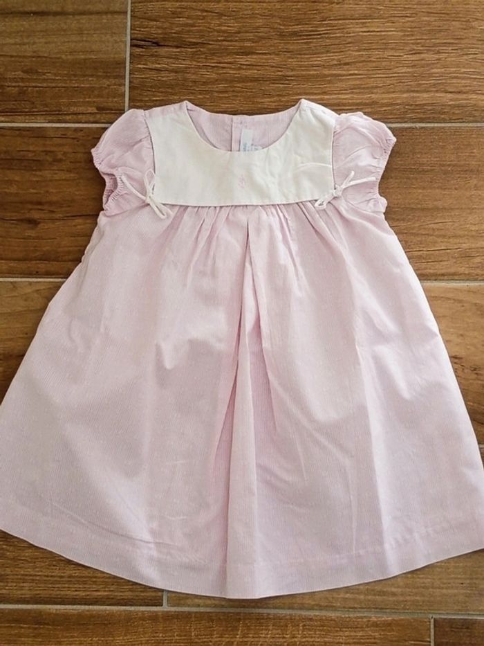 Petite robe rétro à rayures rose et grand col blanc Jacadi, 12 mois - photo numéro 1