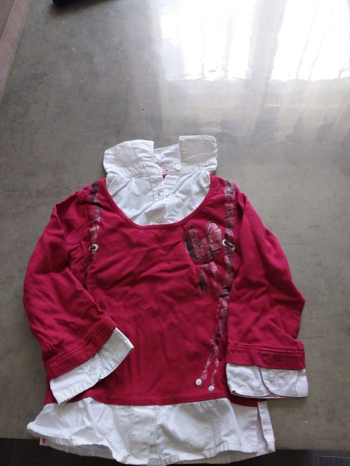 Tee shirt manches longues fille a boutons et col imitation chemisette