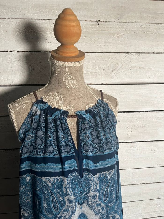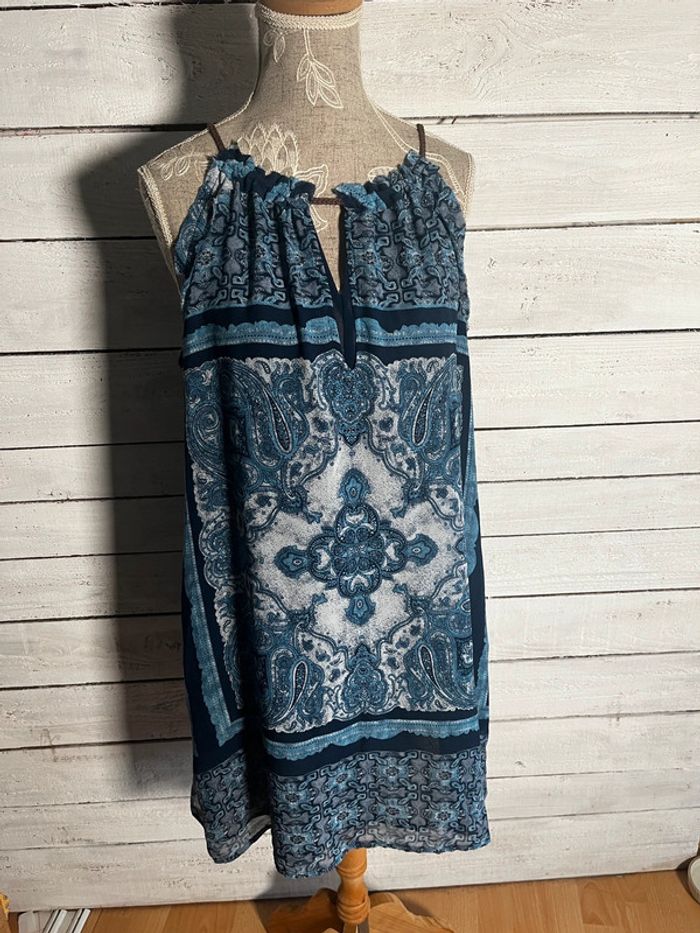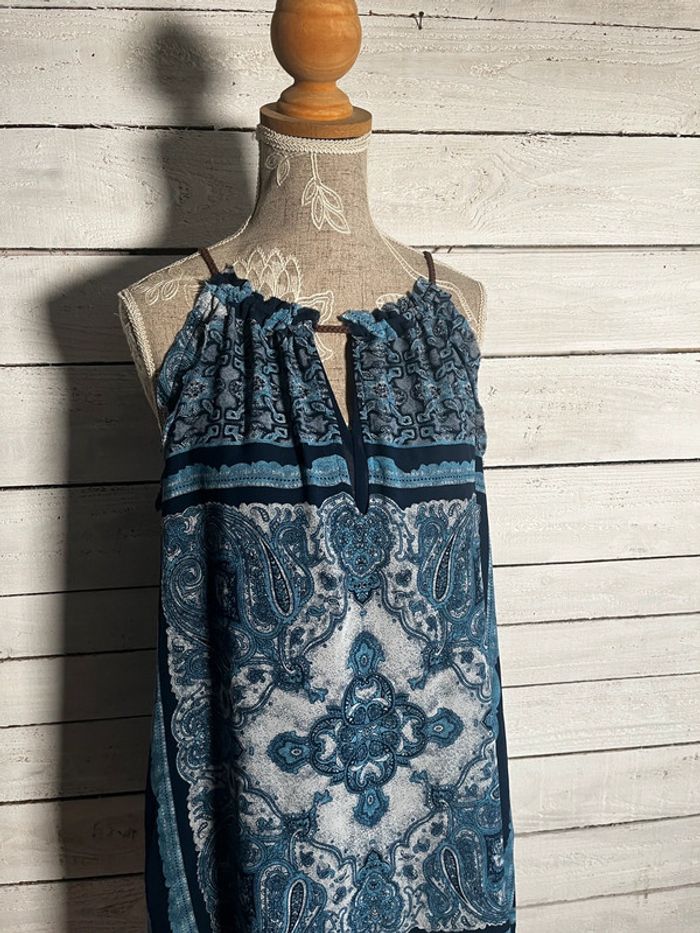 Robe bleue d’ete fluide mango à motifs Étiquette taille s convient à du s/m #robebleuemango #robeetemango #robebleuemotifs