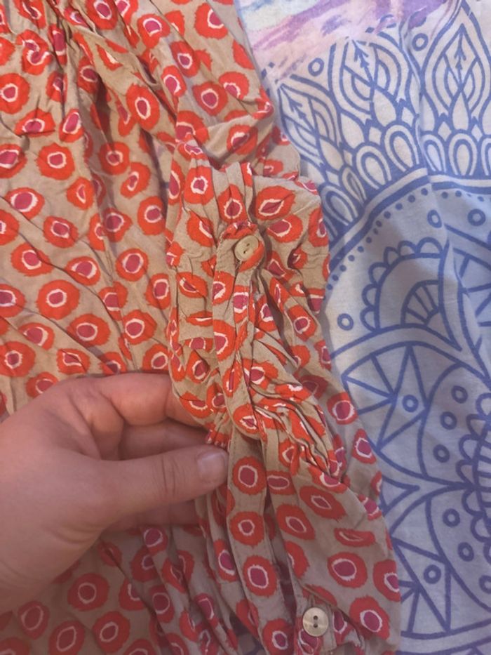 Manche longues, léger, idéal pour les temps comme en ce moment 😅, petits boutons à l’avant et les manches peuvent se retrousser et être maintenues par petits boutons