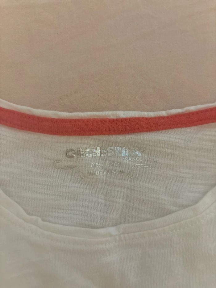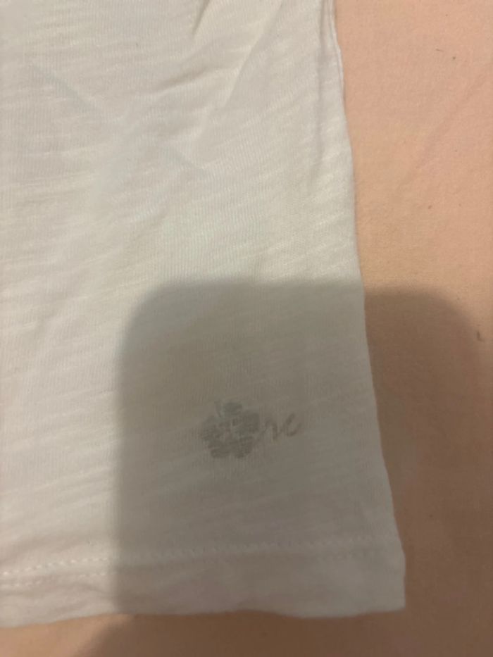 Blanc légèrement transparent avec un tout petit orc en argent sur le bas à gauche du tee-shirt