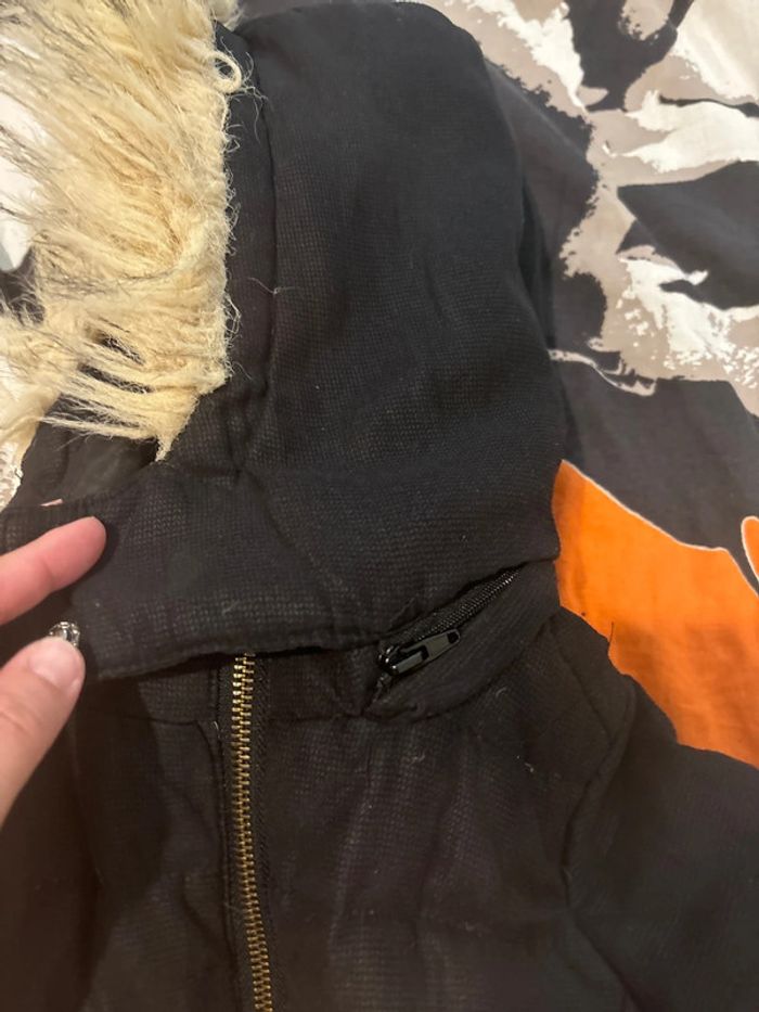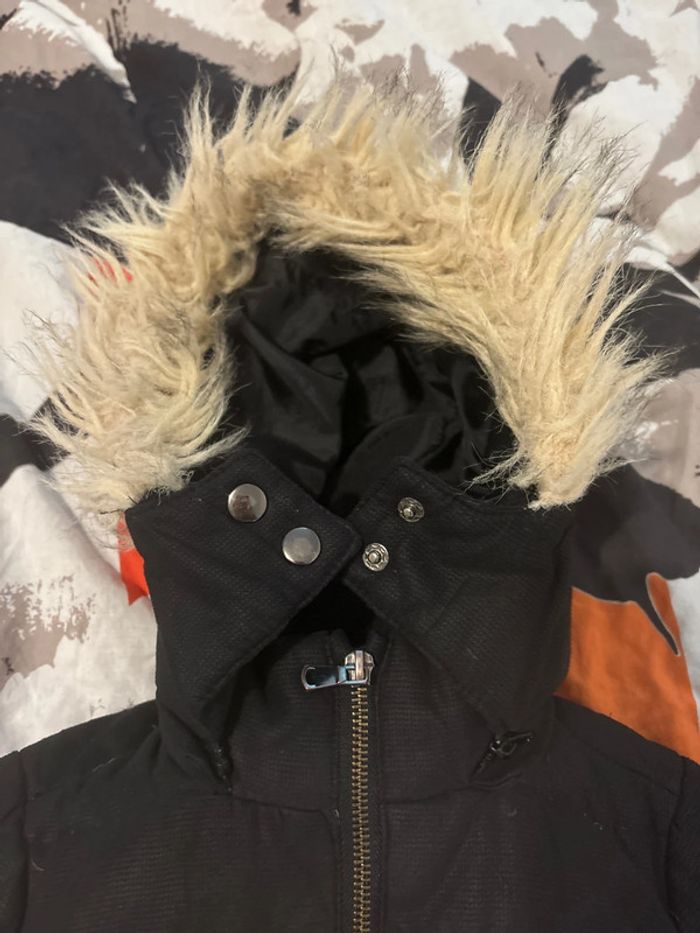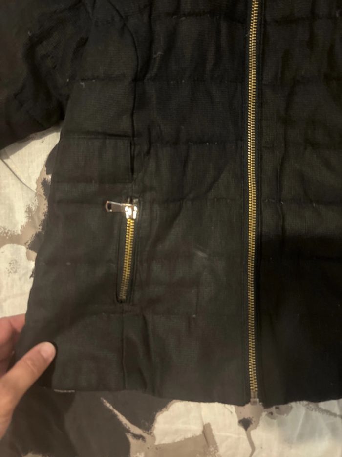 Ressemble plus à un coupe vent qu’une doudoune, la capuche peut s’enlever. ⚠️ sur la dernière photo, ce n’est pas des saletés, c’est l’usure du blouson, je parle de petites bourres lié au lavage