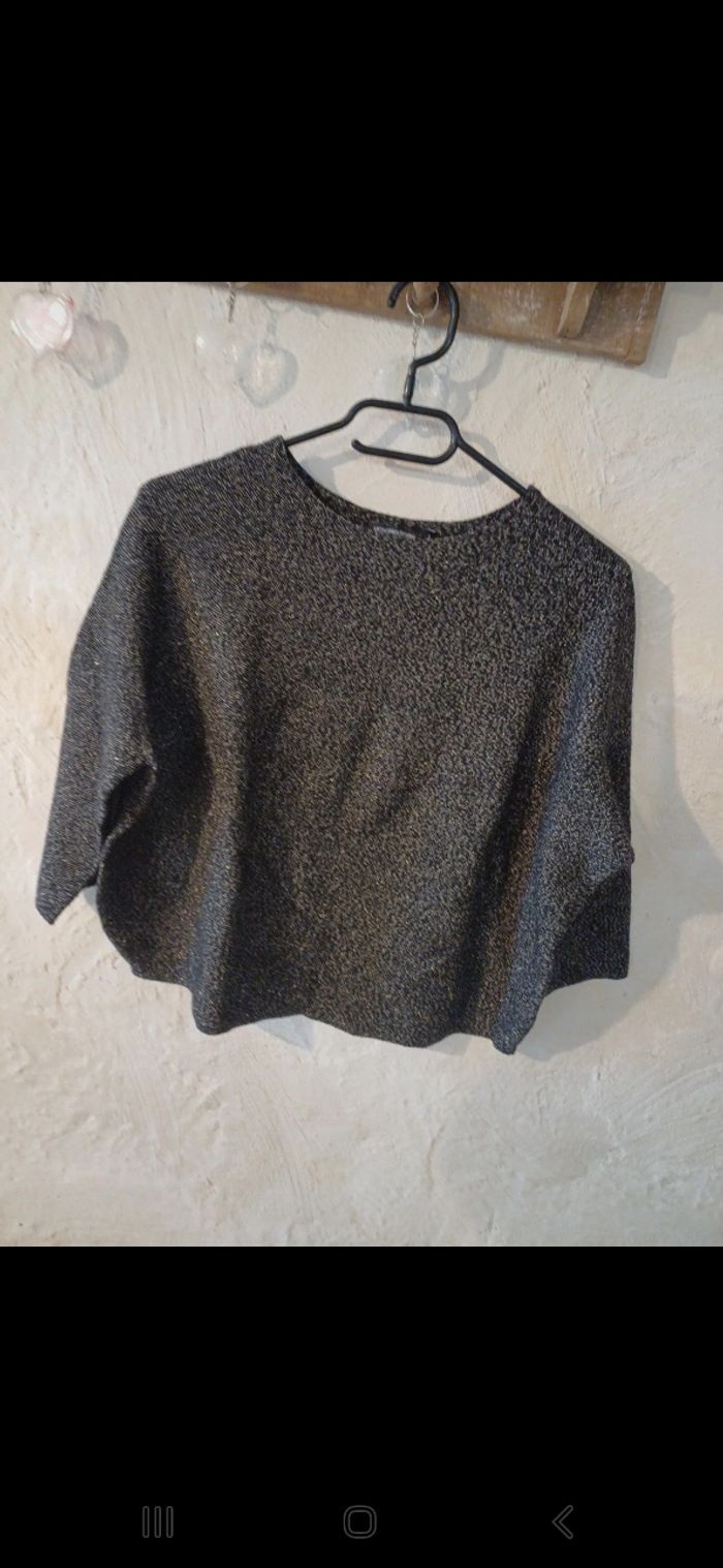 Très joli pull pailleté, léger, manches 3/4. Comme neuf