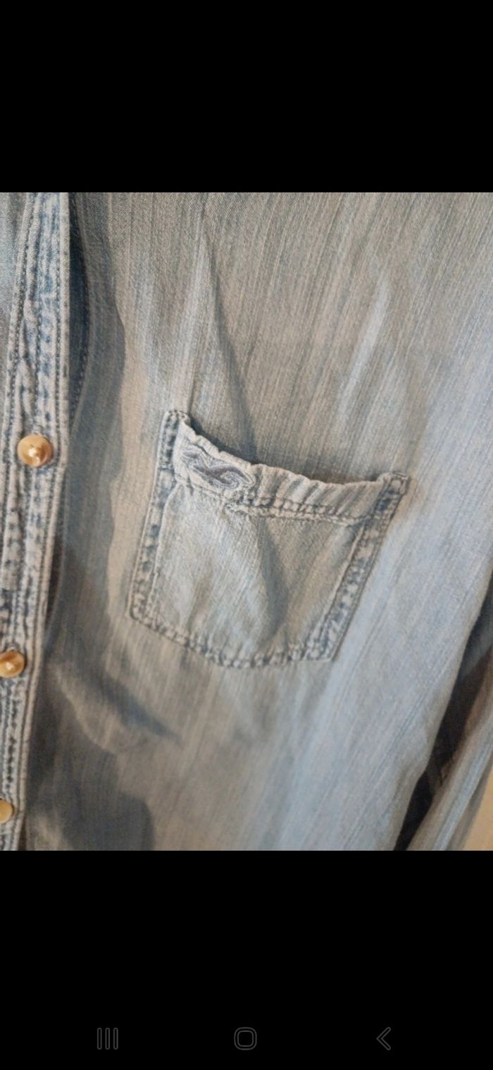 Chemise manches longues, imitation jean. Poche à l avant. En très bon état