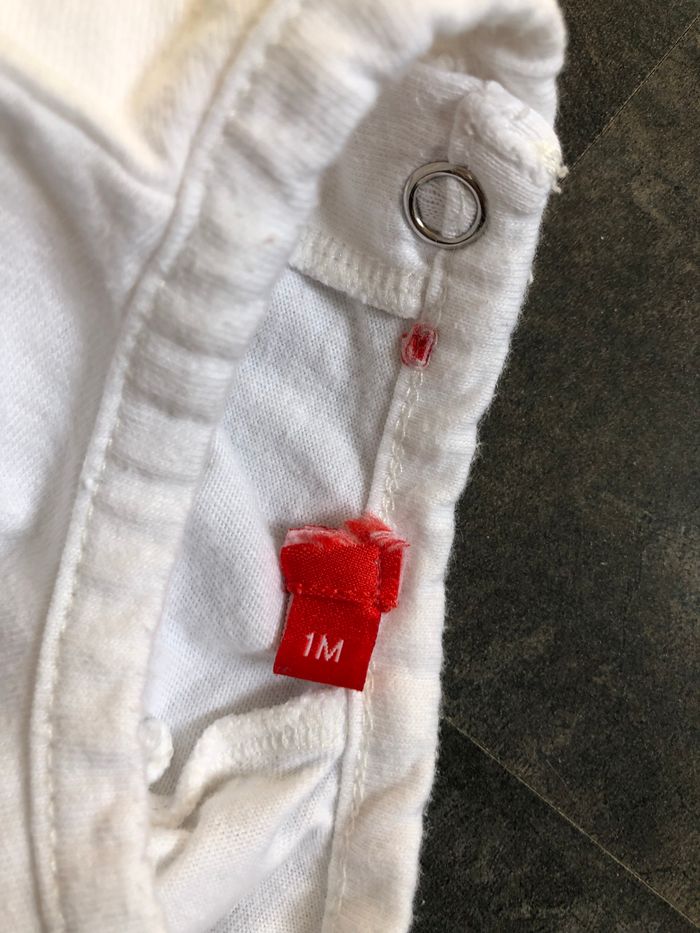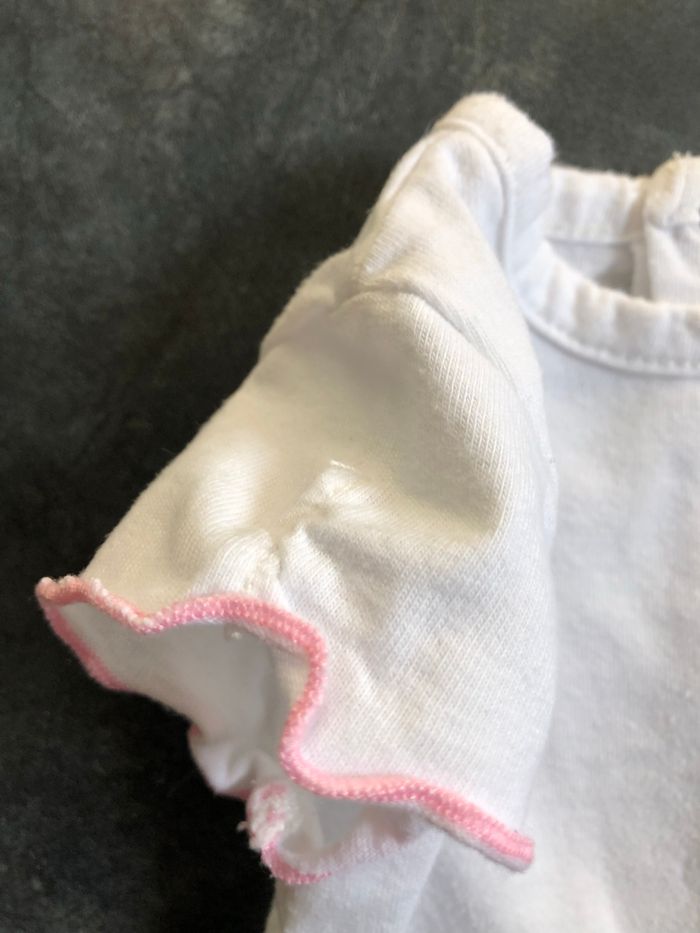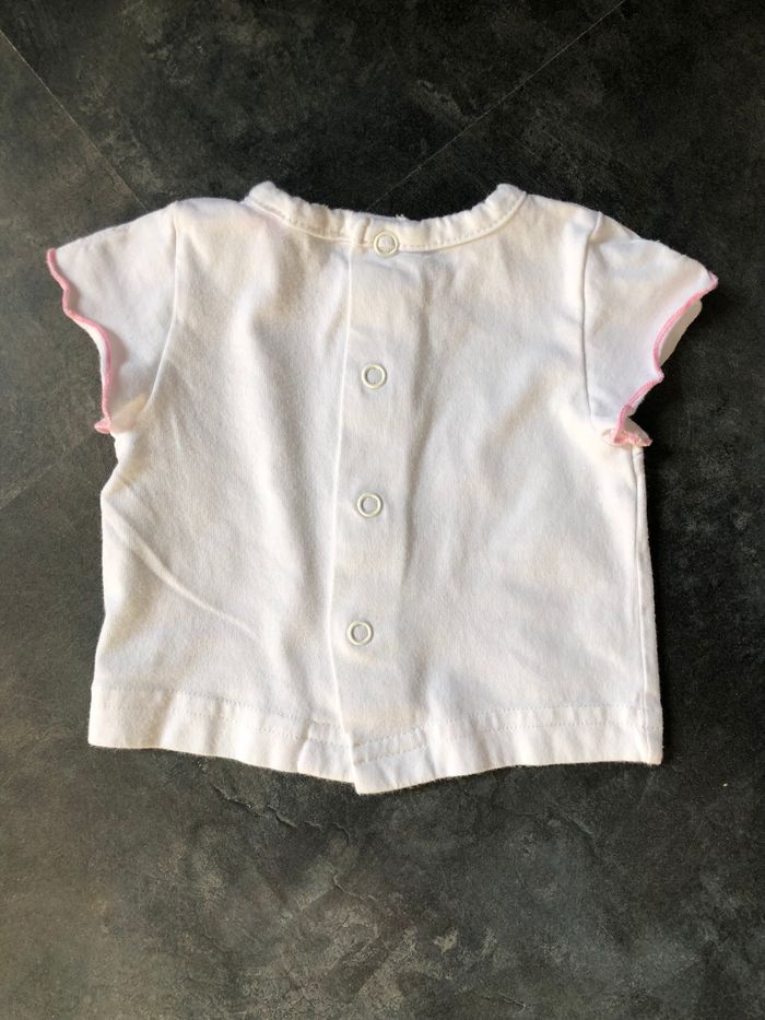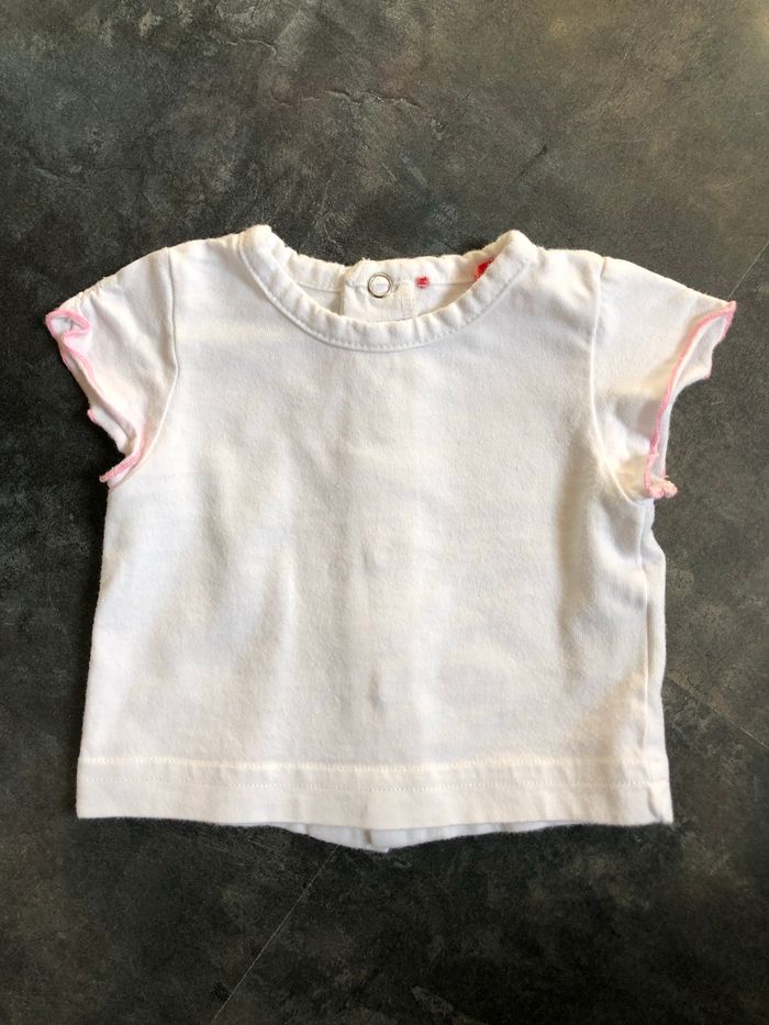 T-shirt blanc manches courtes bordures roses Taille 1 mois Tissaia étiquette coupée