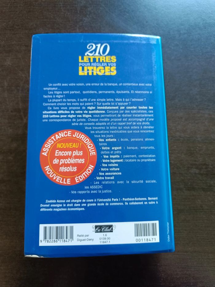 Livre 210 LETTRES POUR RÉGLER VOS LITIGES TRES BON ETAT Allez voir mes autres ventes!