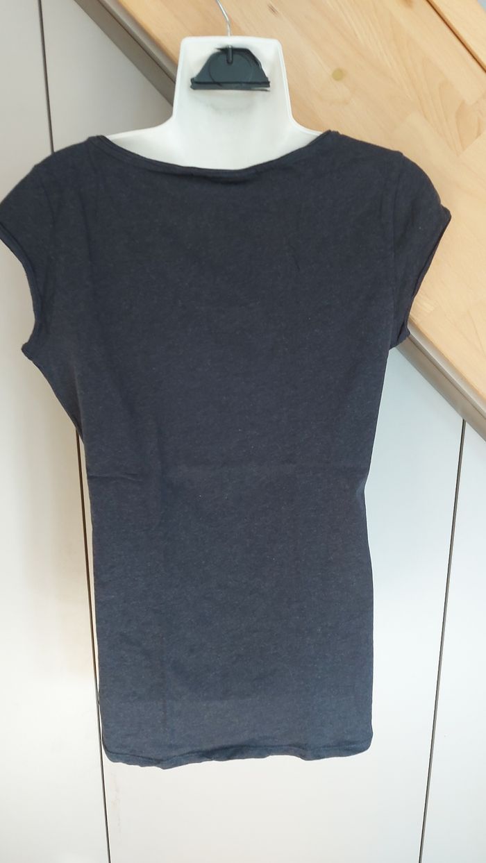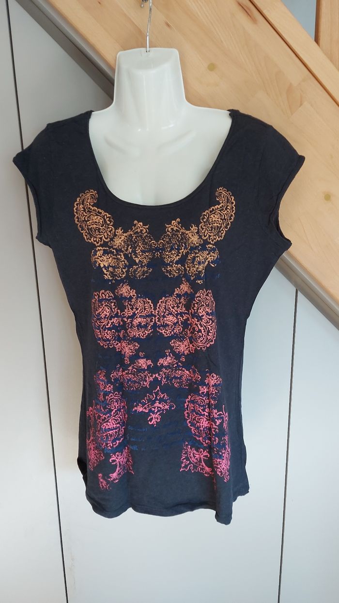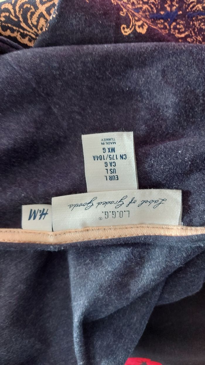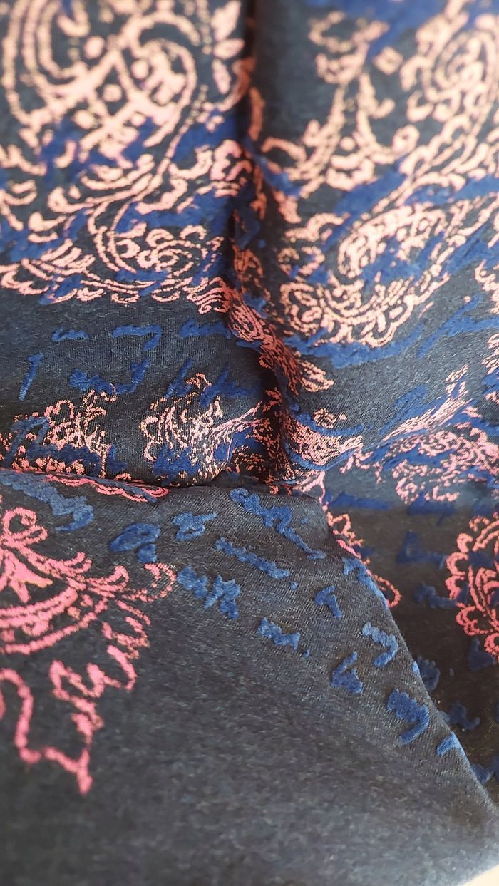 Tee-shirt bleu chiné, motifs multicolores dont les bleus en reliefs et en velours H&M, taille L