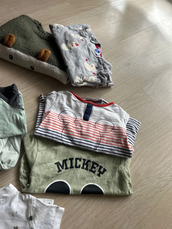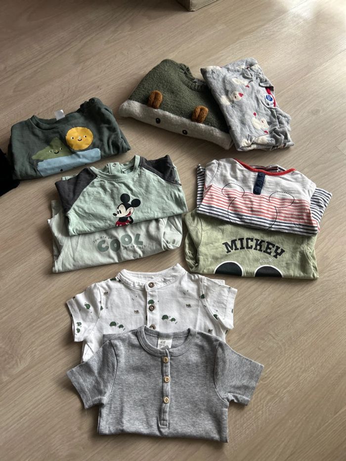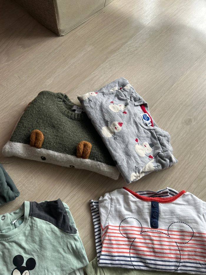 Très bon état. H&M/Kiabi/LaHalle/DisneyBaby/Orchestra/Tex/Mots d’enfants 9-12mois.