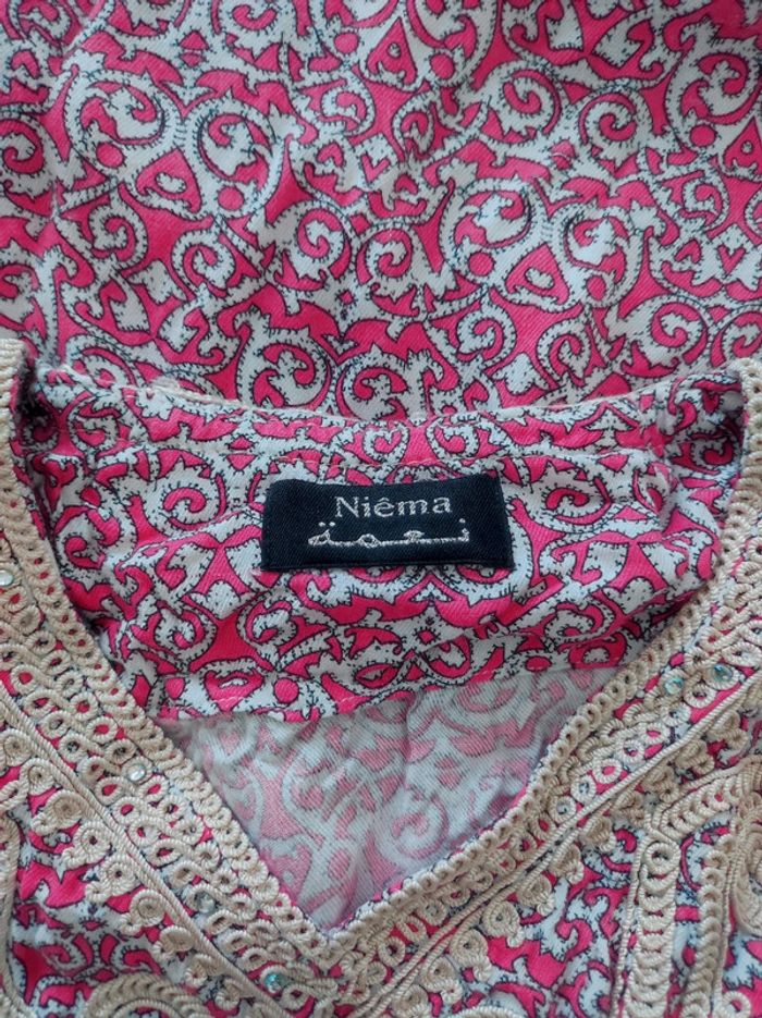 Tunique gandoura arabesque rose dentelle beige strass / Niêma - 36/S à 46/XXXL - photo numéro 5