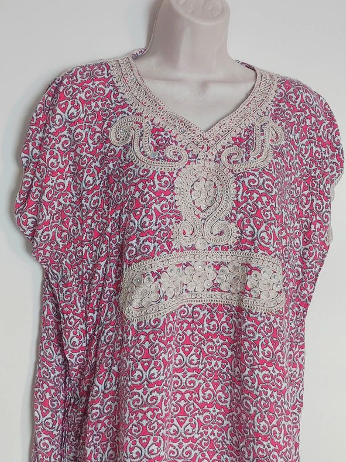 Tunique gandoura arabesque rose dentelle beige strass / Niêma - 36/S à 46/XXXL - photo numéro 3