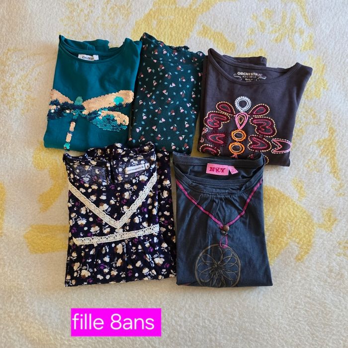 Lot de 5 t-shirts manches longues, taille 8ans. Lulu castagnette, orchestra, okaidi, gémo, NKY. En bon état.