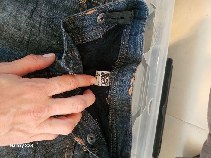 Jean molletonné, idéal pour l'hiver. Peu porté, très bon état Taille 9 mois
