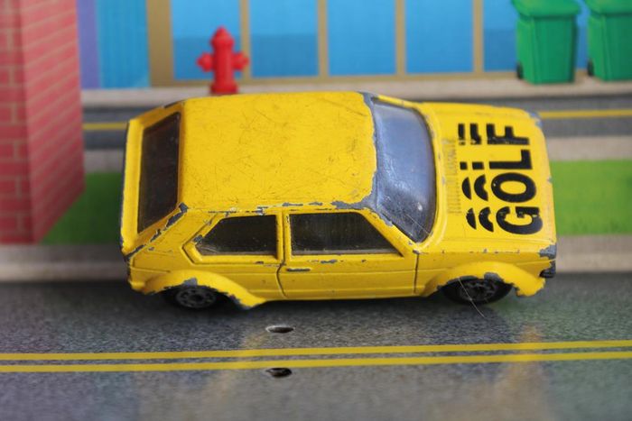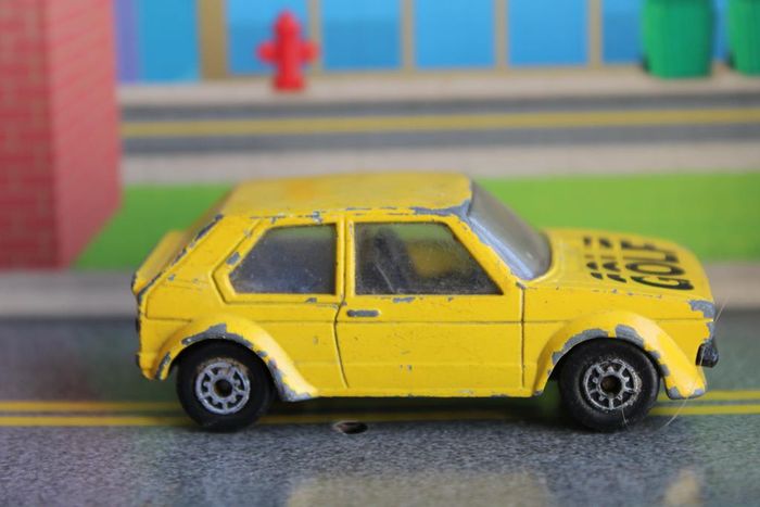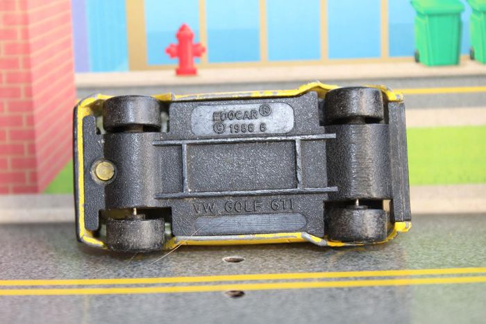 Voiture miniature Wolkswagen Golf GTI Marque : Wolkswagen Modéle : Golf GTI Échelle : Environ 1:64; 3 inches, 7 cm Couleur : Jaune, vitrage blanc clair Intérieur : Noir Chassis : Plastique noir Fabricant : Edocar Année de production : 1986 Voiture miniature en bon état. Les axes de roues ne sont pas tordus, le vitrage est intact. Manques de peinture sur la carrossrie. Réponds avec plaisir aux demandes d'informations complémentairre Réponse rapide envoi soigné dans les meilleurs délais