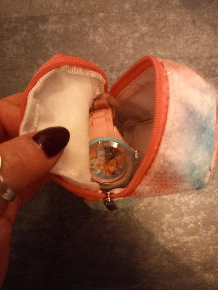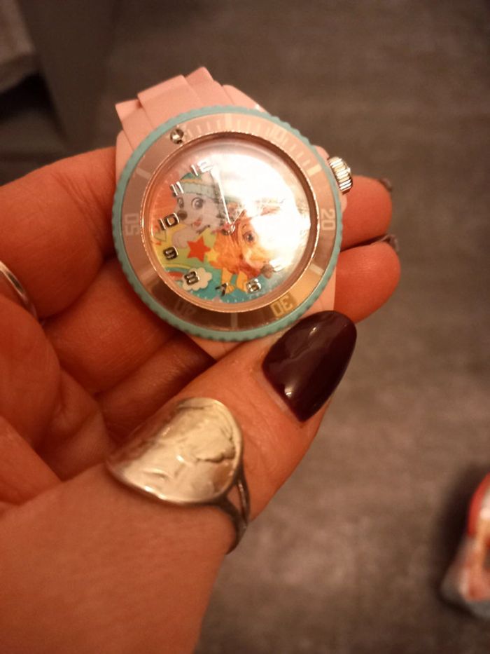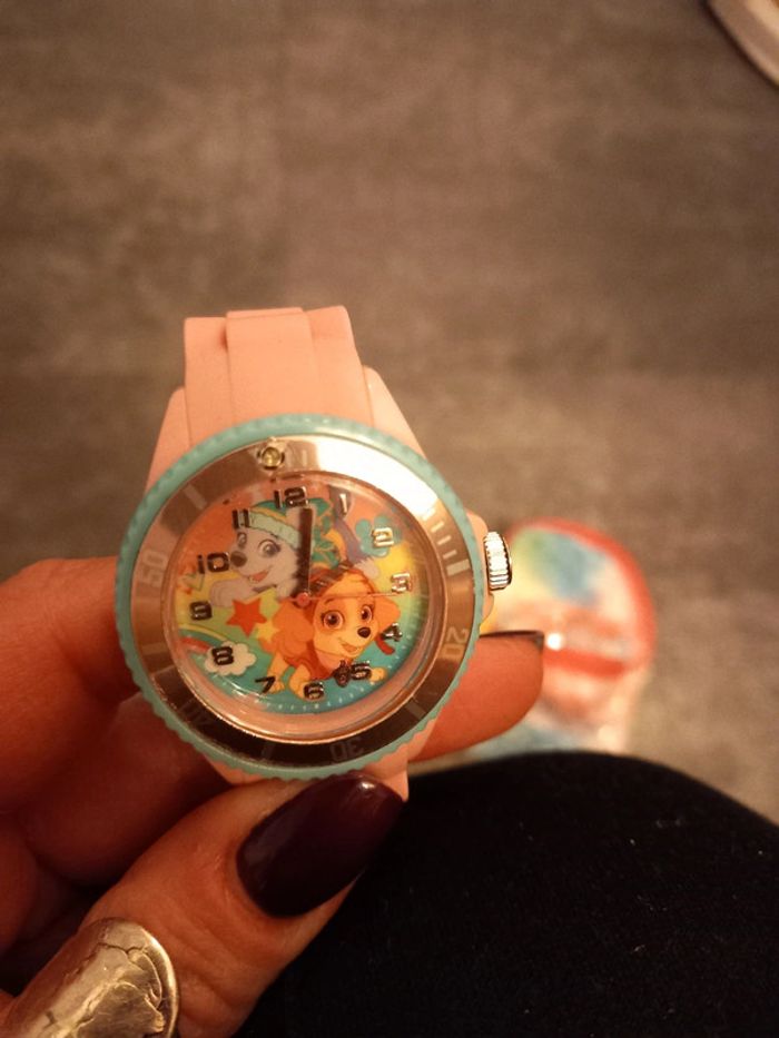 Montre pat patrouille , rose quelques rayures sur le cadran sinon très bon état, livré dans le petit sac à dos