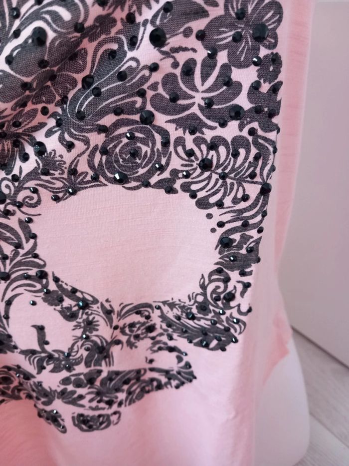 Neuf sans étiquette. Taille M/L. Rose pâle. Motif tête de mort avec strass
