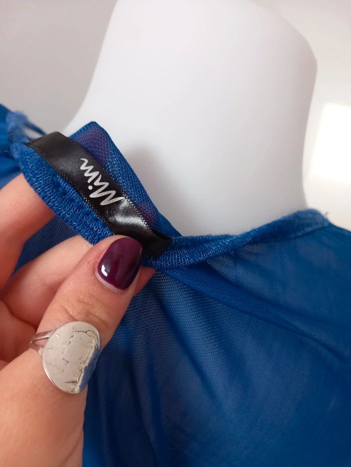 Très bon état, bleu électrique, dos transparent. Mim. Taille M