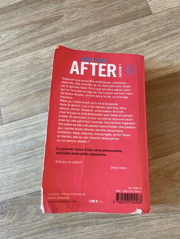 Livre after tome 1 en bon état A un peu vécu tout de même d’où le prix , il est corné en bas et pris un peu l’humidité, je pense :( Envoi rapide