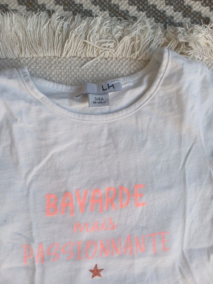 En bon état general taille 3/4ans. Écriture fluo plus légèrement pailleté .