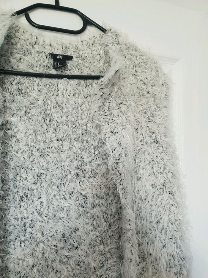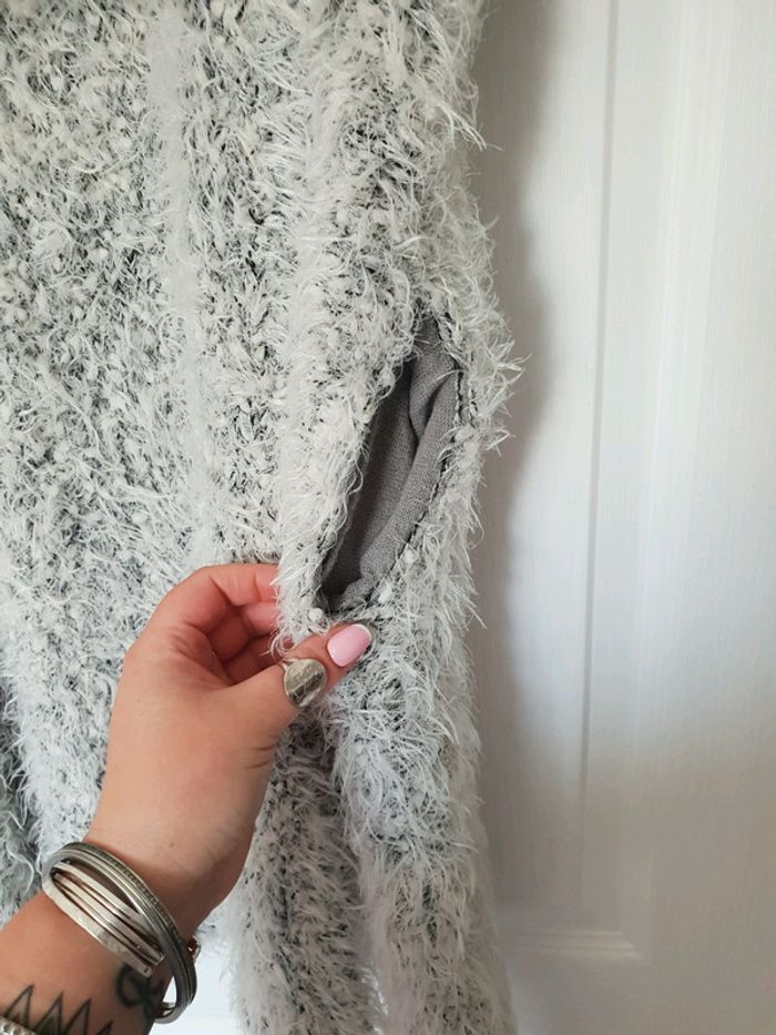 Très bon état gilet à poil gris et blanc parti que avec 2 poches
