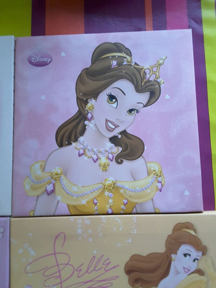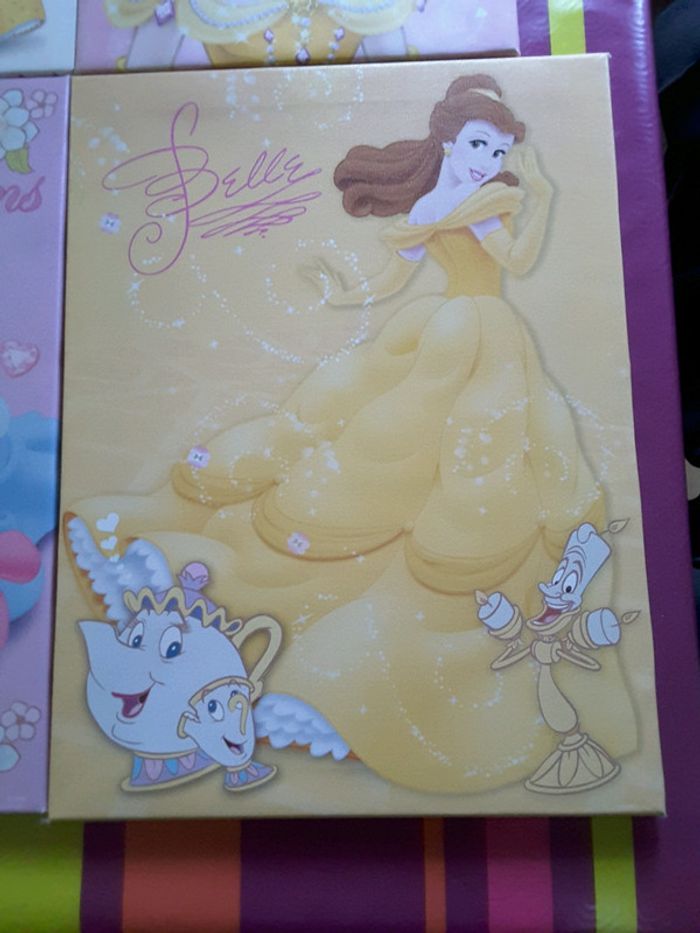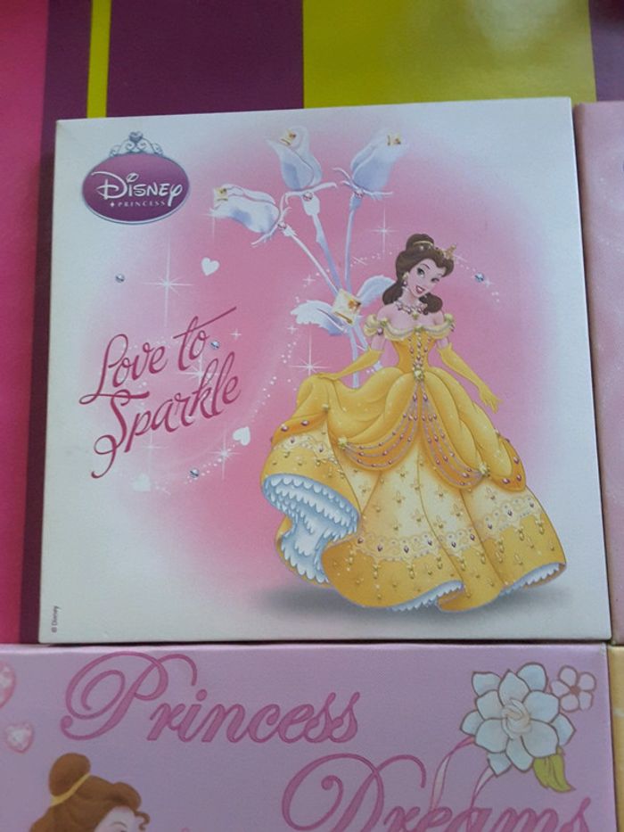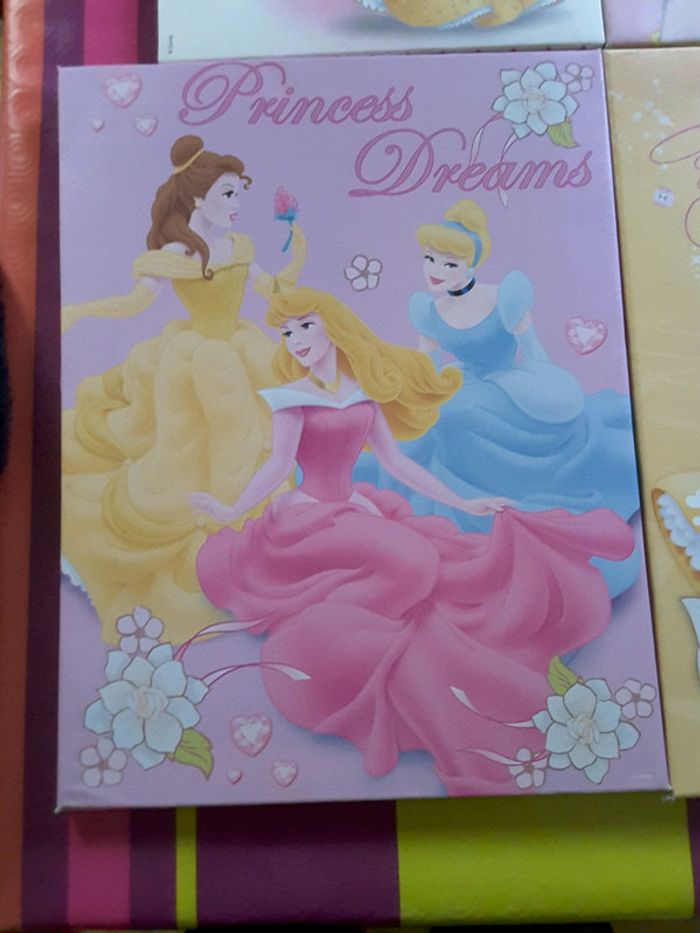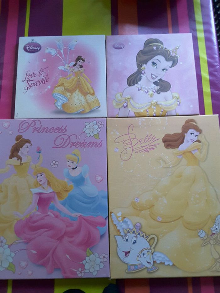 Lot de 2 grandes toiles et 2 petites princesses Disney très bon état juste certains coin un peu usés ( voir photo)