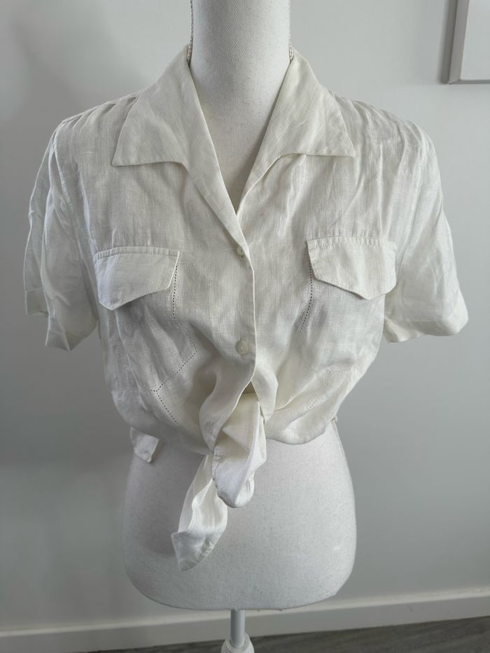 Chemisier en lin blanc à manches courtes Rodier T40 L - photo numéro 2