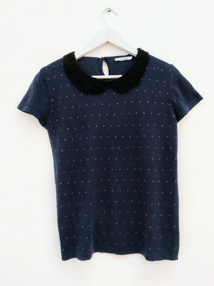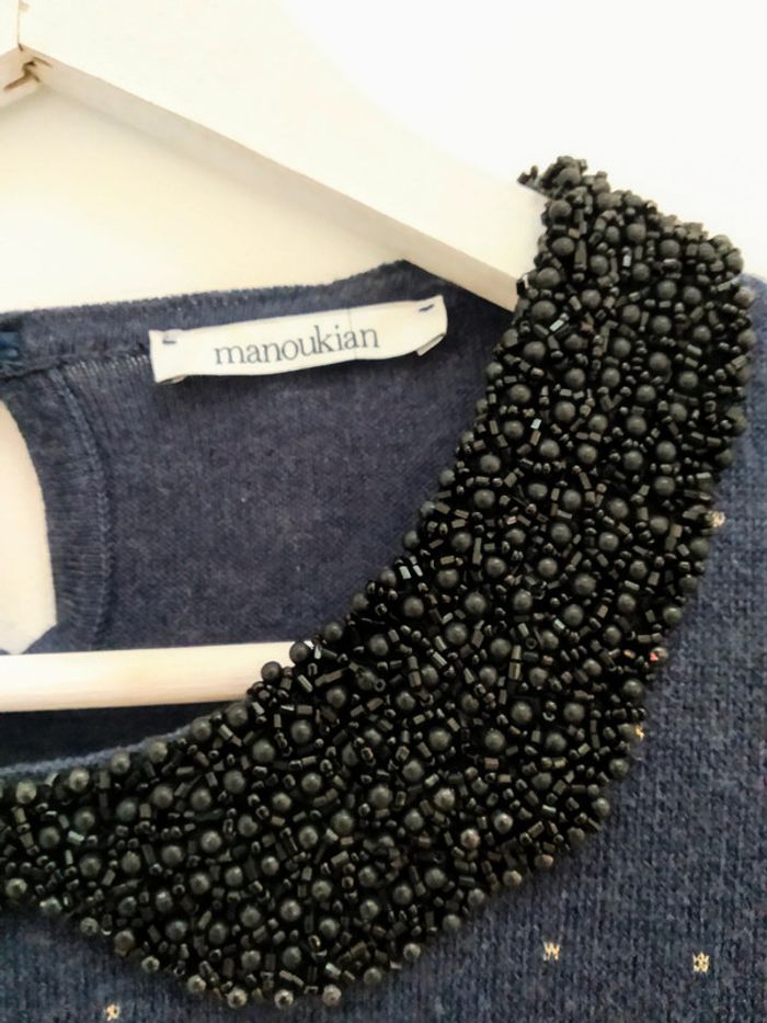 PAS VINTED GO MERCI Petit pull bleu marine Manoukian taille 38 Manches courtes, bleu marine avec de petits brillants. En excellent état, une belle composition avec 30% de laine et 70% de viscose, un joli col claudine en perles. Très classe ! épaules 39 cm poitrine 45 cm, extensible , longueur 58 cm #melizzia38 #manoukian #manoukian38 #haut38 #tshirt38 #manoukiantailleM #tshirtmanoukian #123taille38 #haut123 #caroll #esprit #tshirt #tshirttaillem #petitpull #tshirtchic #petitpull38 #pullmanchescourtes #pullmanchescourtes38