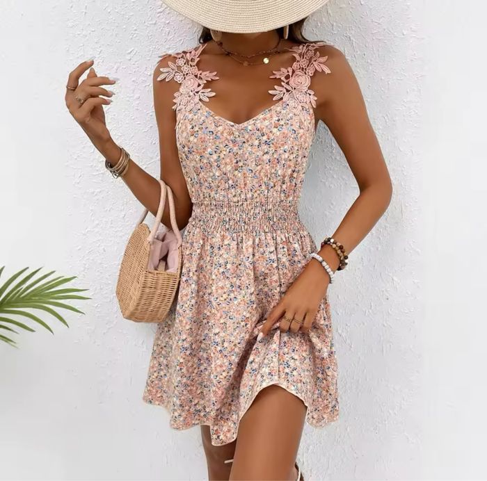 Robe d’été élégante & irrésistible – Collection 2025 Mini-robe fluide à fleurs, coupe flatteuse avec taille smockée qui met la silhouette en valeur. Bretelles ornées de dentelle florale délicate, décolleté en V subtil, dos légèrement ouvert. Tissu léger, doux et aérien — confortable et raffiné à la fois. Une pièce parfaite pour une soirée d’été, un dîner romantique, une balade au bord de mer ou une escapade en vacances. Style bohème-chic, touche glamour, et charme intemporel. État : Neuve / Jamais portée Une robe qu’on ne regarde pas… on la remarque.