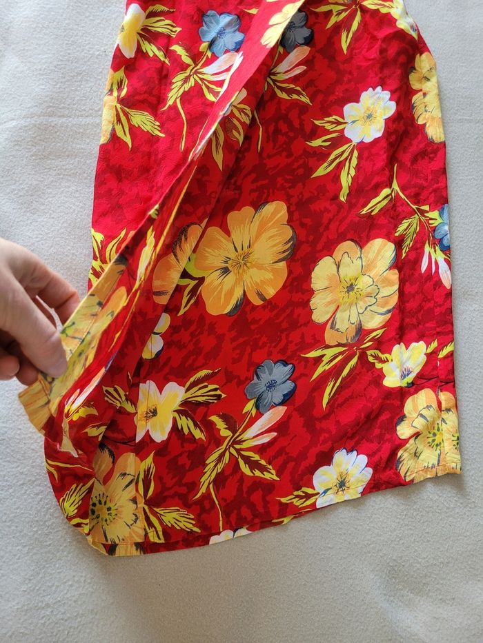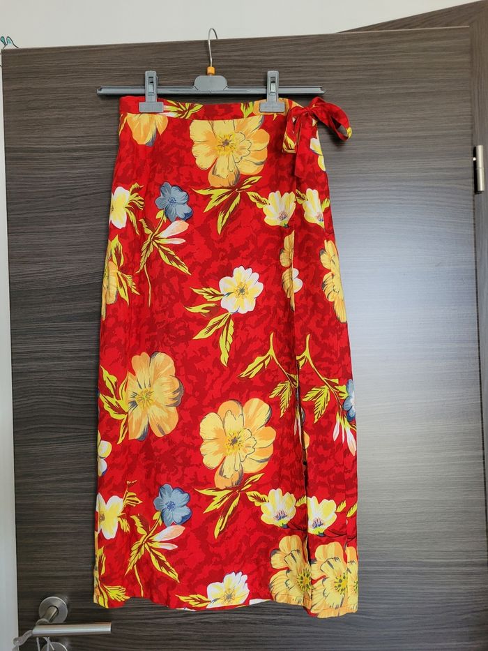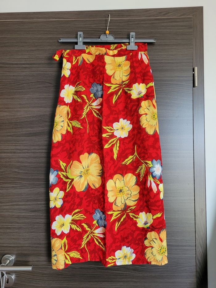 Jupe portefeuille paréos 42/44 En très bon état Rouge fleurie Longueur 87 cm Largeur Taille 36 cm