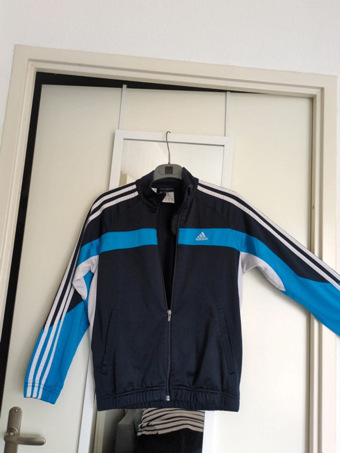 Haut de survêtement mixte bleu et blanc. Très bon état. Epaules 36/46/59 #vesteadidasoriginal #survêtement12ansgarçon #adidasvintagejacket #trackjacket #survetementadidas #veste12ans