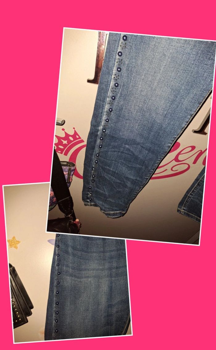 Jeans 👖 neuf étiquetté Petites perles sur tout le long des 2 côtés Taille 4xl/48