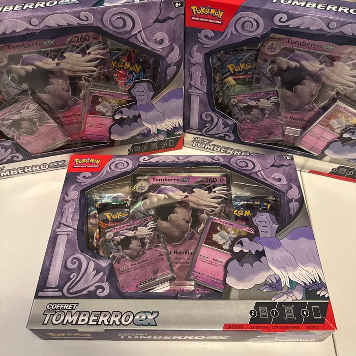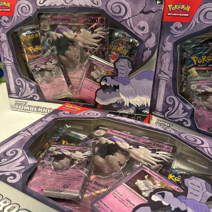 Vente de 3 Coffret Tomberro ex reconditionnés —> Présent dans les coffrets les cartes promos respectives ainsi que la carte Jumbo —> Présent dans chaques boosters : Cartes reverses, holos et rares . PS : ce sont des cartes que j’ai en doublon ayant bientôt fini mes masterset
