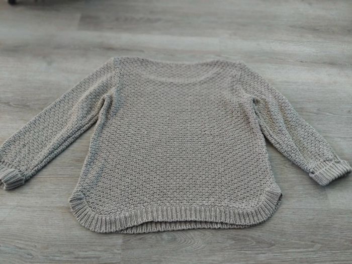 Bonjour, je vends ce pull gris avec liserés argentés de la marque Bréal taille 42 en bon état. Lavé maison non fumeur.