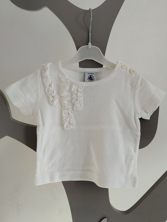 Joli tee-shirt manches courtes blanc Petit Bateau taille 3 mois