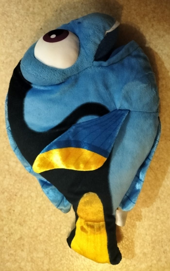 Voici ma peluche Nemo, le poisson-clown bien connu de l'univers Disney Pixar ! Cette adorable peluche bleue et jaune mesure 35 cm de haut et est super douce. Elle représente fidèlement le personnage de Nemo avec ses grands yeux expressifs et ses nageoires caractéristiques. Parfait cadeau pour les fans de la saga Le Monde de Nemo, cette peluche est en excellent état et prête à trouver une nouvelle maison. Elle fera le bonheur d'un enfant ou d'un collectionneur. N'hésitez pas à me poser des questions si vous avez besoin de plus d'informations ! Très bon état 5€