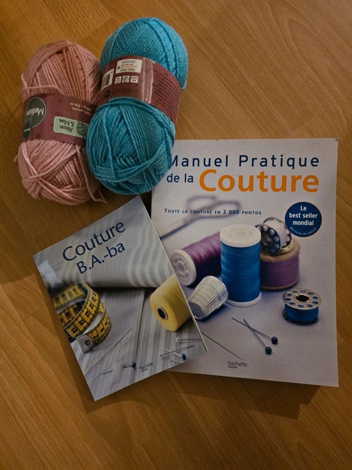 Kit couture : 2 pelotes de laines 2 livres de couture - Couture B.A ba - Manuel pratique de la couture