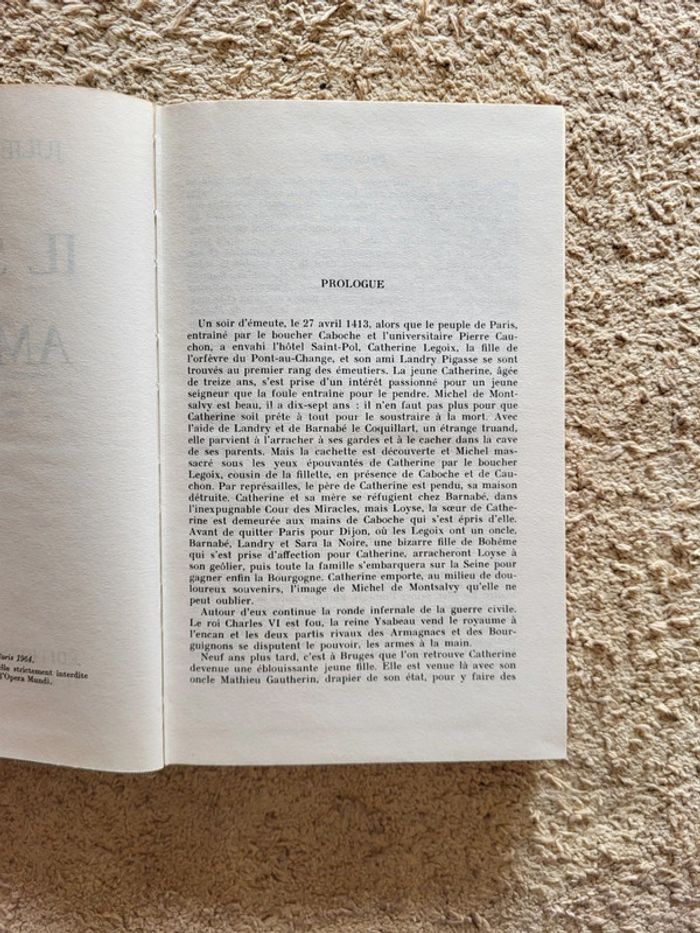 ⭐️ Nombreux livres dans mon dressing et réductions sur les lots activées ✨️ 📚 Livre "Il suffit d'un amour", premier tome de la célèbre saga Catherine de Juliette Benzoni Paru en 1964 aux Éditions Opera Mundi 📖 Couverture cartonnée avec jaquette un peu abîmée, pages en très bon état 📍Romance 📕 Dans la France troublée du XVe siècle, en pleine guerre de Cent Ans, Catherine Legoix, jeune et belle fille d’un orfèvre parisien, voit sa vie basculer lorsqu'elle croise le chemin d’Arnaud de Montsalvy, un chevalier aussi fier que mystérieux. Amour passionné, intrigues de cour, complots, jalousies… Ce roman nous entraîne dans un tourbillon d’aventures au cœur de l’histoire médiévale française. Un incontournable pour les amateurs de grandes fresques romanesques.