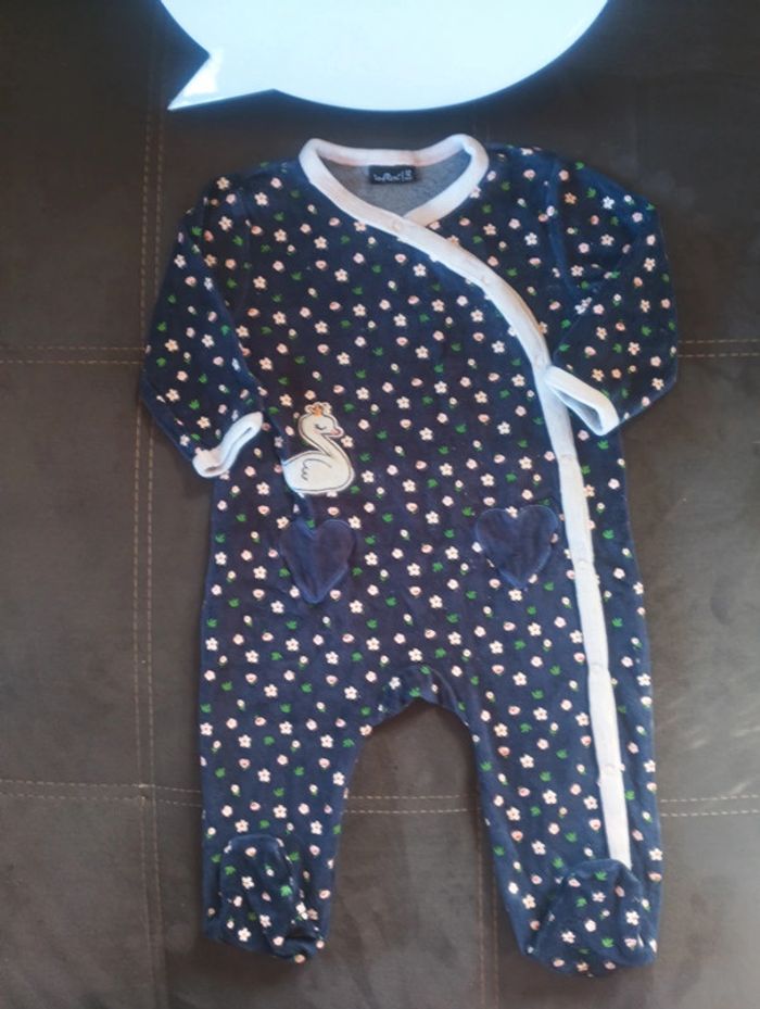 Pyjama velours Fille 12 mois cygne fleurs Influx - photo numéro 1