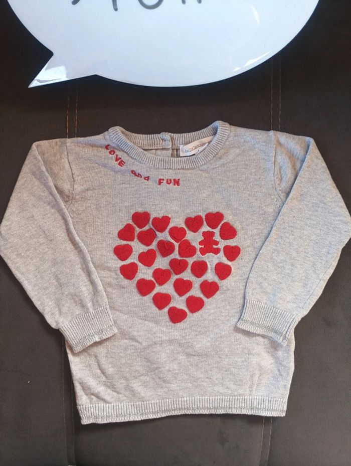 Pull gris et rouge Fille 18 mois Cœur love and fin Lulu castagnette