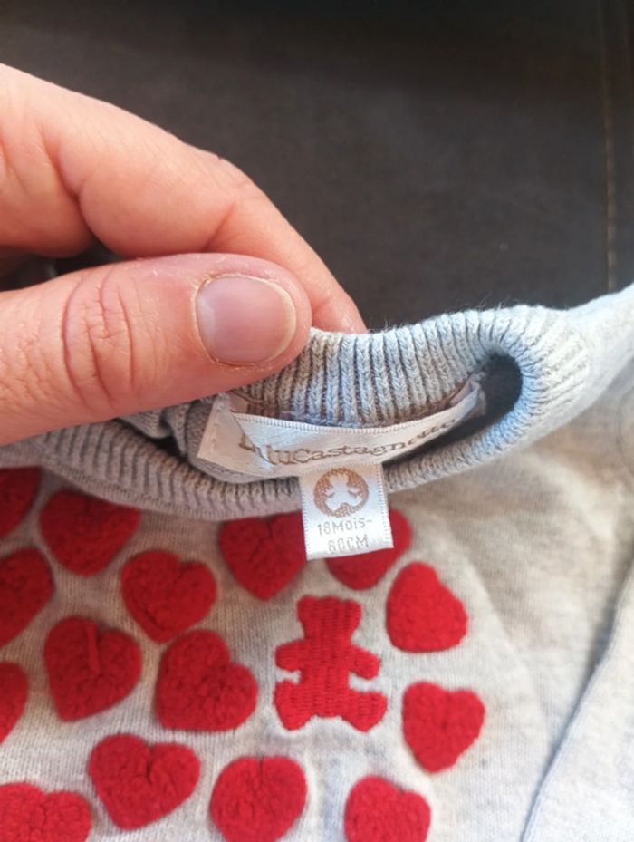 Pull gris et rouge Fille 18 mois Cœur love and fin Lulu castagnette - photo numéro 2