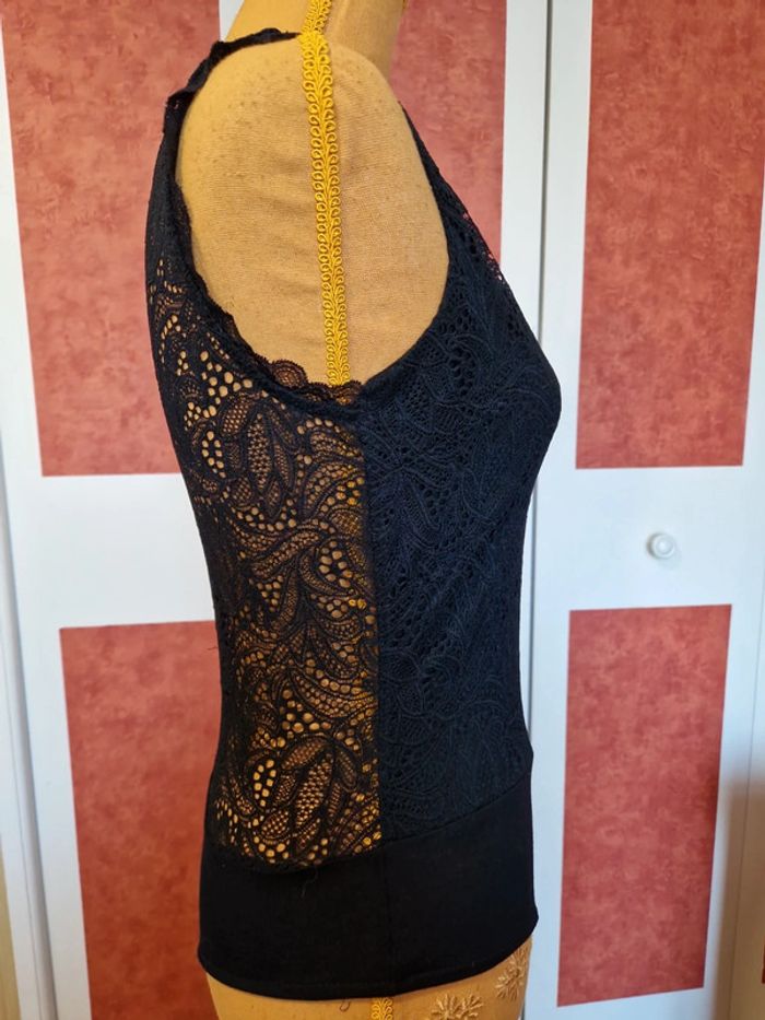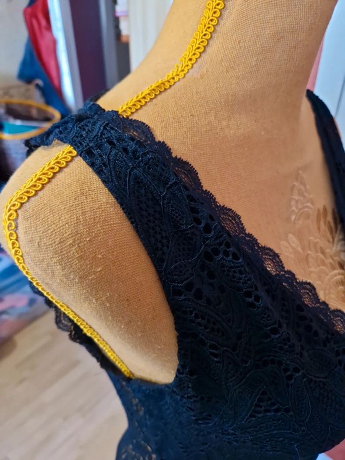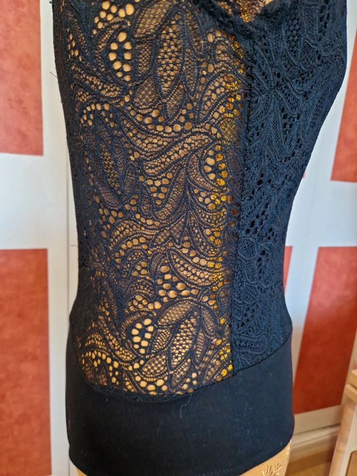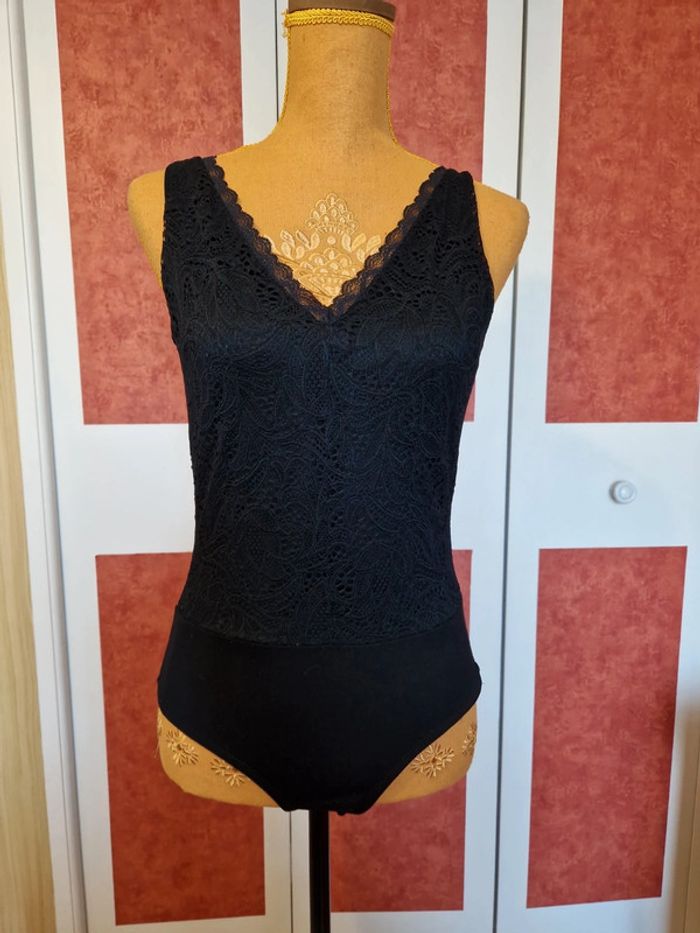 PAS D EXPÉDITION VIA VINTEDGO Body en excellent état très peu portée. Dentelle sur Haut et dans le dos. Fermé par un bouton dans la nuque et boutons pression entre jambe. Étiquette composition et taille coupé.