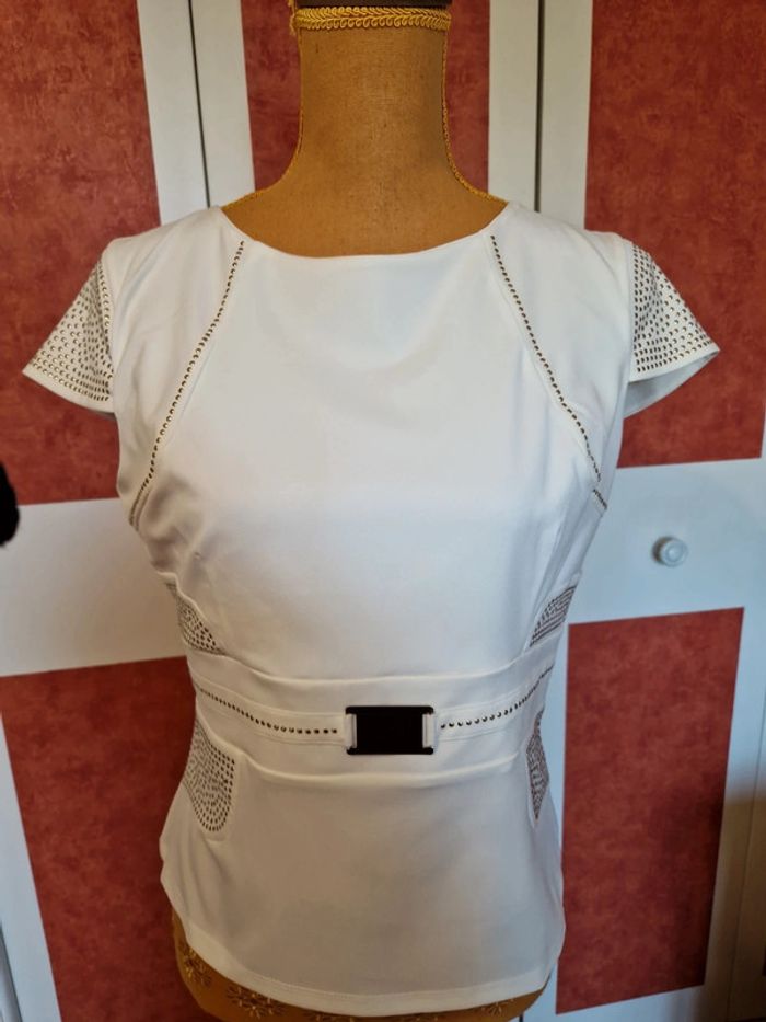 PAS D EXPÉDITION VIA VINTEDGO Haut en bon état. Manque quelques petites détails doré voir photo. Zip nuque. Taille 38