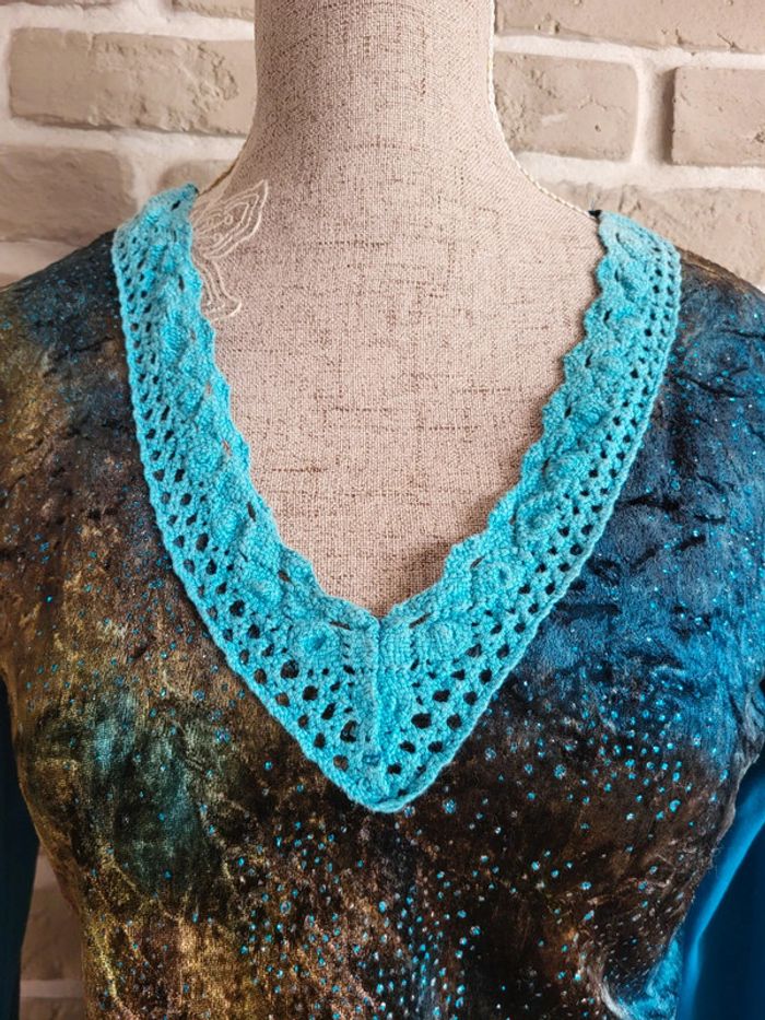 T-shirt Vintage - Velours, strass et col en crochet - photo numéro 9